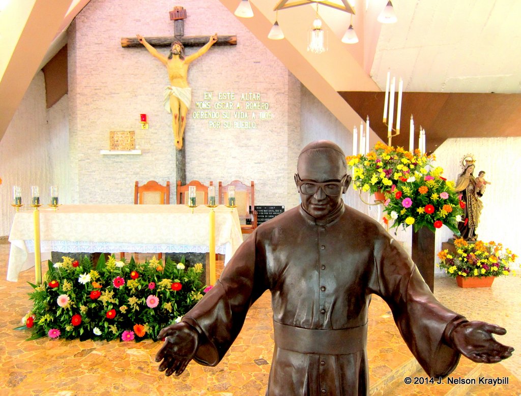 Today a life-size statue of Archbishop Romero stands at the spot where he delivered his last homily in the chapel of Divina Providencia hospital. When he finished speaking, he stepped to the altar in the background and died from a bullet fired from the rear of the building.