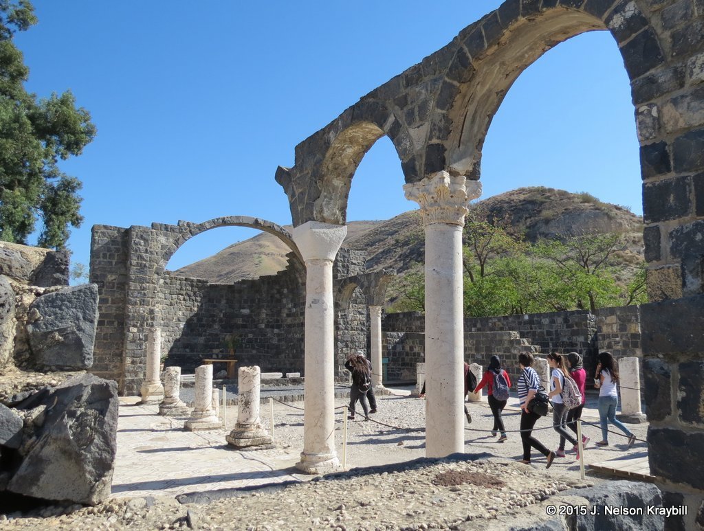 On the east shore of the Sea of Galilee, these remains of a fifth-century church and monastery at Kursi mark the traditional location of Gergesa where Jesus cast demons out of Legion. In the distance are hillsides where swineherds cared for pigs.