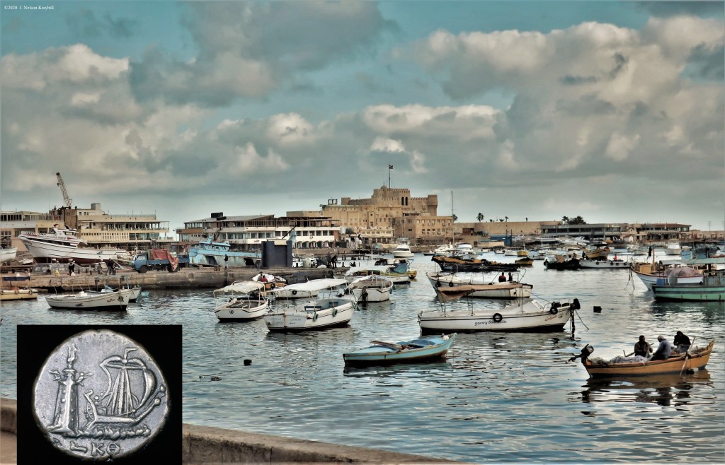 The coin featured in my photo of Alexandria harbor is from Bibliothèque nationale de France, image found online at https://www.wonders-of-the-world.net/Seven/Lighthouse-of-Alexandria.php